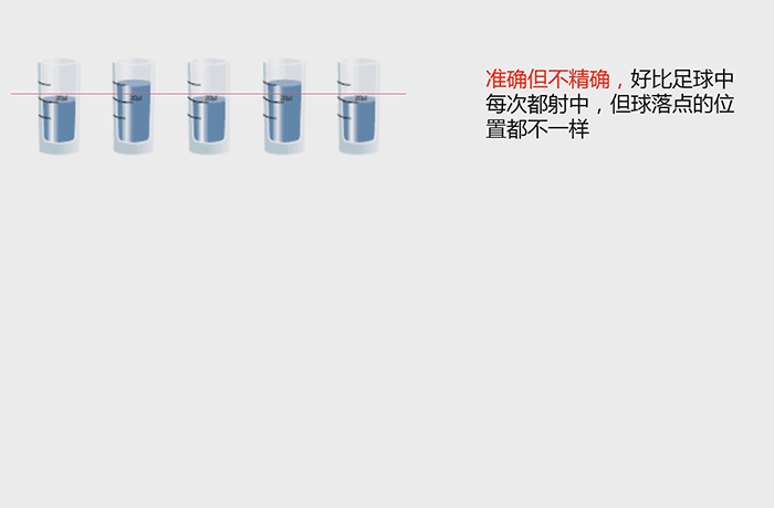 球員射門(mén)的精準性決定比賽的勝負,而移液器的精準性決定實(shí)驗是否成功。移液器的精準性也由準確性和精確性組成。如下圖所示: