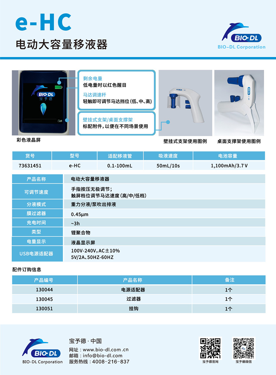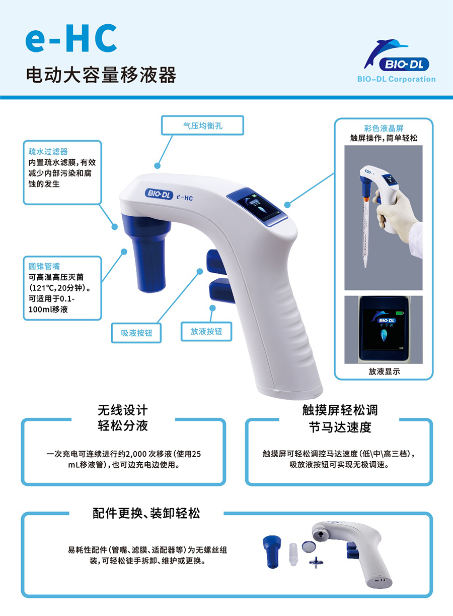 BIO-DL e-HC電動(dòng)大容量移液器,大容量移液器,電動(dòng)移液器,具備出色的人體工程學(xué)設計,靈敏的速度控制功能可確保對多種液體進(jìn)行輕松順暢移液與分液。